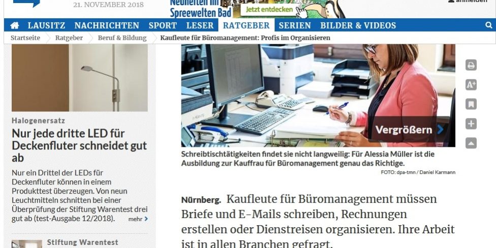 „Kaufleute für Büromanagement müssen Briefe und E-Mails schreiben, Rechnungen erstellen oder Dienstreisen organisieren. Ihre Arbeit ist in allen Branchen gefragt.“