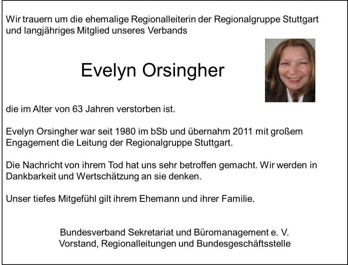 Nachruf Evelyn Orsingher AllgemeinVon bSb Office Team29. November 2019bSb – DAS Netzwerk für Office Professionals.