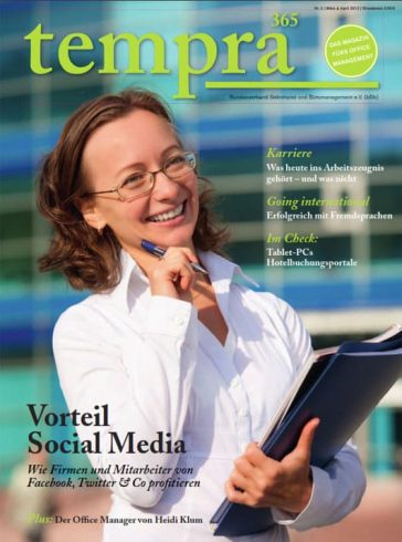 Liebe Leserinnen und Leser, in der neuen tempra365-Ausgabe März & April erwarten Sie wie immer spannende Artikel. Titelthema: Vorteil Social Media – Wie Firmen und Mitarbeiter von Facebook, Twitter und Co…